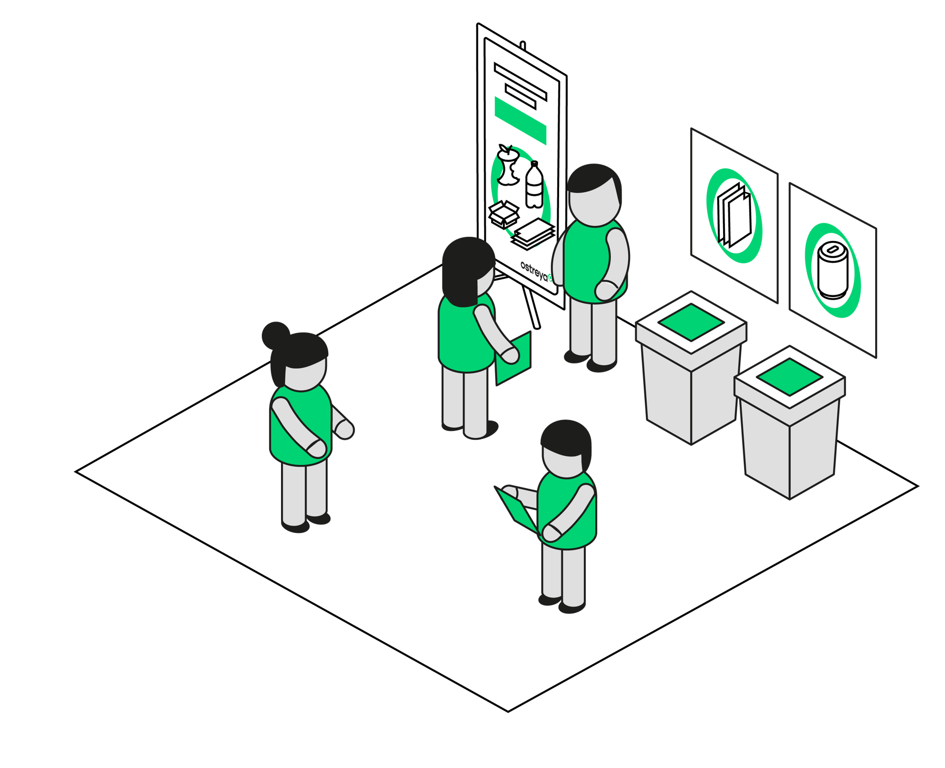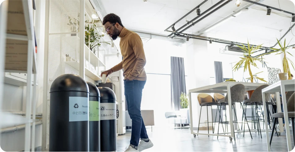 Nous installons une signalétique claire et pédagogique dans vos espaces de travail : bureaux, cuisines, zones de pause, photocopieuses. Chaque point de collecte est identifié par flux pour éviter les erreurs et maximiser les taux de valorisation dès le premier jour.